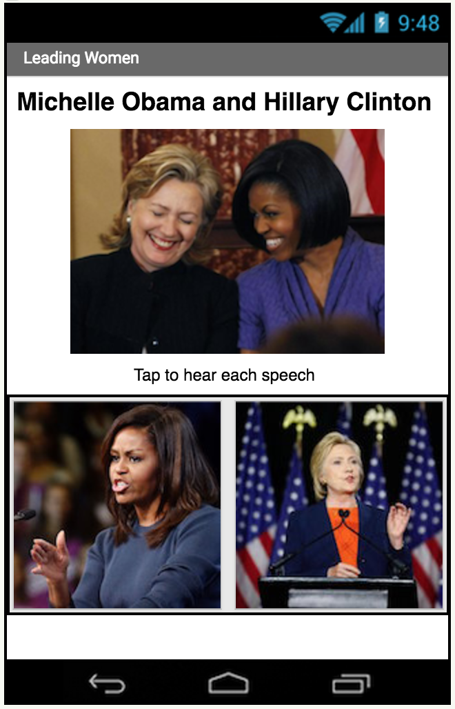 Drag an Image component above the two buttons. Set the image to one of both Clinton and Obama (use hillary_and_michelle.png).
